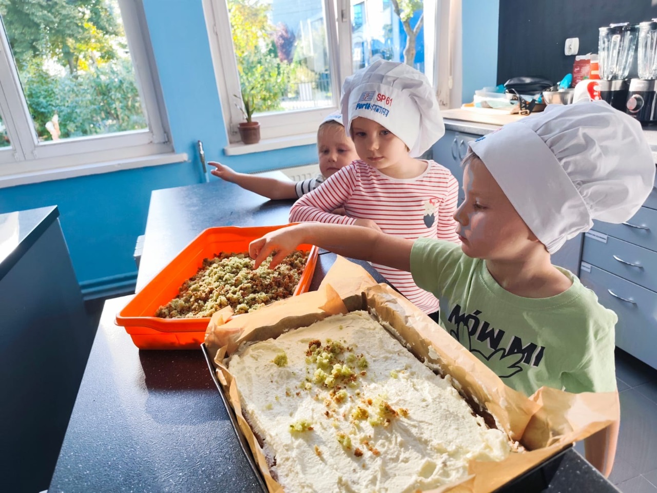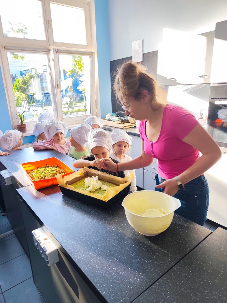 Pysznie, szpinakowo i malinowo! Dzieci z Grupy Żółtej odiwedzily SP61 i swtorzyły smakowite ciasto!